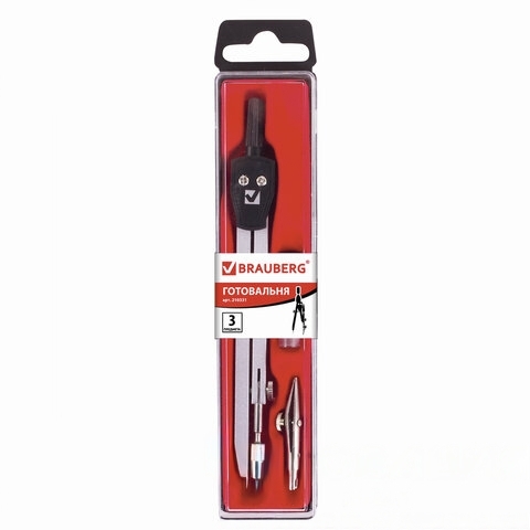 Готовальня BRAUBERG "Architect", 3 предмета: циркуль 135 мм, рейсфедерная вставка, грифель, 210331