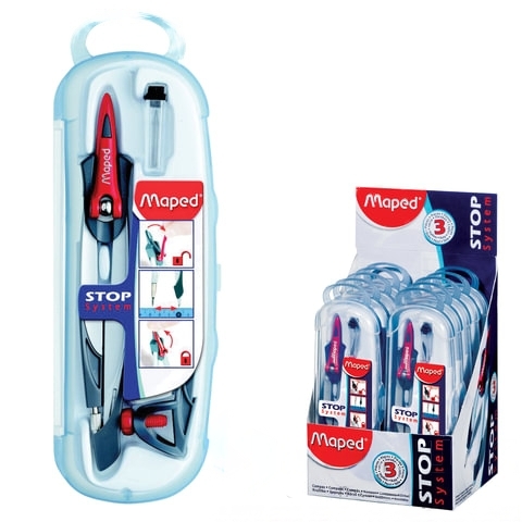 Готовальня MAPED (Франция) "Stop System", 3 предмета, ударопрочный пенал с европодвесом, 196100