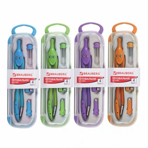 Готовальня BRAUBERG "Modern", 4 предмета: циркуль 135 мм, точилка, отвёртка, грифель, 210664