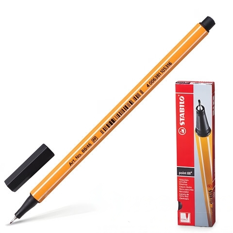 Ручка капиллярная (линер) STABILO "Point", ЧЕРНАЯ, корпус оранжевый, линия письма 0,4 мм, 88/46