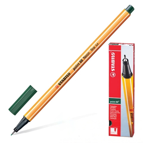 Ручка капиллярная (линер) STABILO "Point 88", ЦВЕТ ТРАВЫ, корпус оранжевый, линия письма 0,4 мм, 88/63