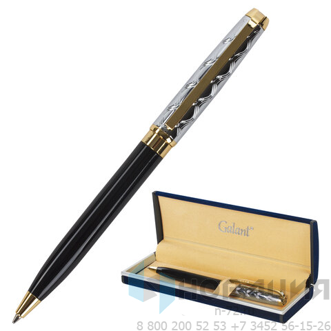 Ручка подарочная шариковая GALANT "Consul", корпус черный с серебристым, золотистые детали, пишущий узел 0,7 мм, синяя, 140963
