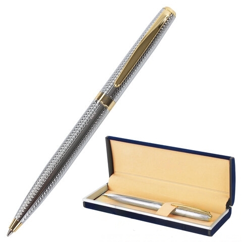 Ручка подарочная шариковая GALANT "Marburg", корпус серебристый с гравировкой, золотистые детали, пишущий узел 0,7 мм, синяя, 141015