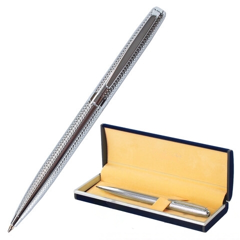 Ручка подарочная шариковая GALANT "Freiburg", корпус серебристый с гравировкой, хромированные детали, пишущий узел 0,7 мм, синяя, 141016