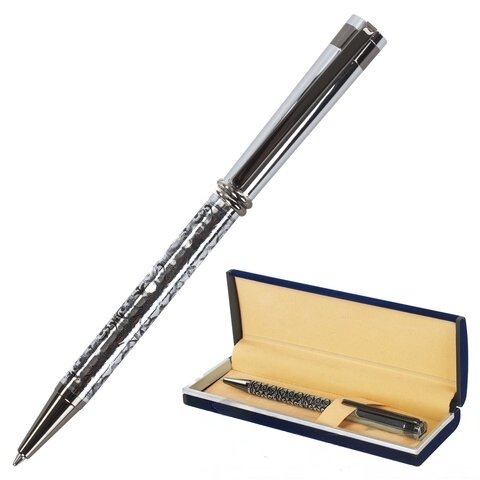 Ручка подарочная шариковая GALANT "Locarno", корпус серебристый с черным, хромированные детали, пишущий узел 0,7 мм, синяя, 141667