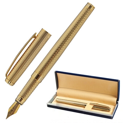 Роскошная модель перьевой ручки с корпусом из латуни золотистого цвета и декоративной гравировкой на корпусе. Синий цвет чернил; иридиевое перо украшено гравировкой. Диаметр пишущего узла - 0,8 мм. Тип пера M (Medium) - средняя ширина линии. Поставляется в индивидуальном подарочном футляре. Подходит для гравировки.