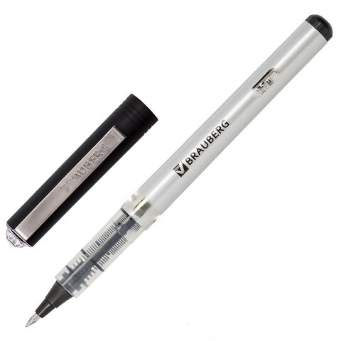 Ручка-роллер BRAUBERG "Flagman", ЧЕРНАЯ, корпус серебристый, хромированные детали, узел 0,5 мм, линия письма 0,3 мм, 141555