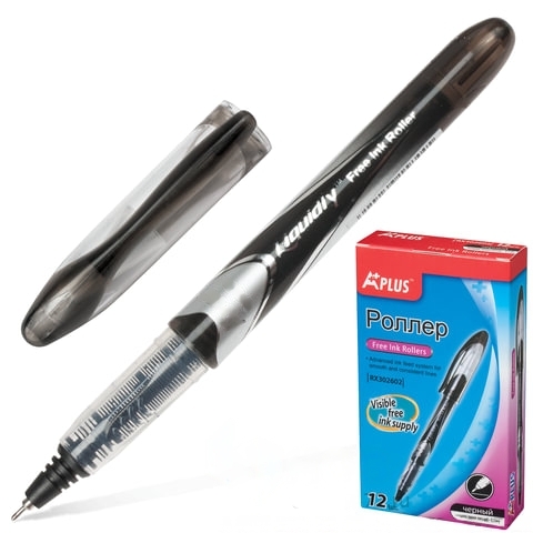 Ручка-роллер BEIFA (Бэйфа) "A Plus", ЧЕРНАЯ, корпус с печатью, узел 0,5 мм, линия письма 0,33 мм, RX302602-BK