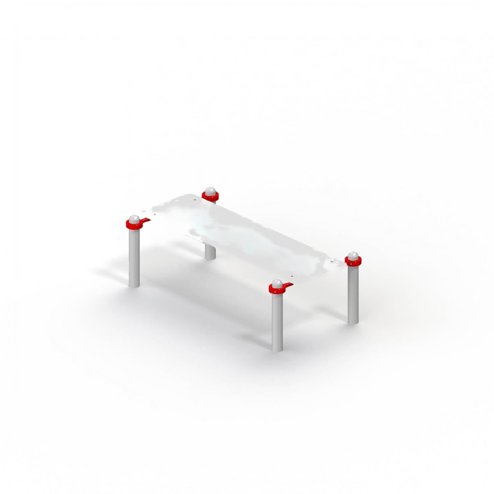 Уличное оборудование состоит из: 4-х стоек, настила со скругленными углами и 2-х перекладин.