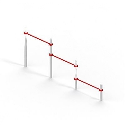 3 перекладины при помощи хомутов закрепляются между 4-х несущих стоек на высоте 400 мм, 900 мм и 1300 мм. Гладкие сварные швы и скругленные углы конструкции подходят для детской зоны воркаута.