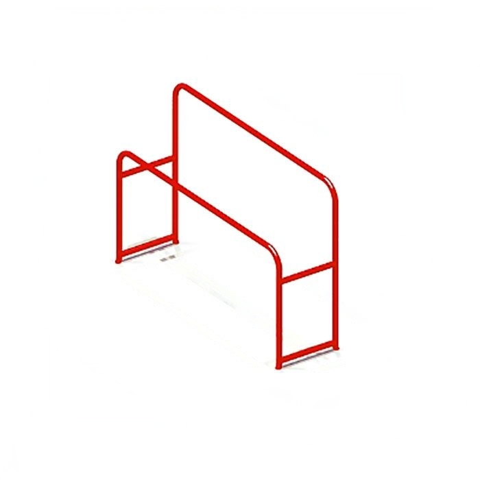 Конструкция состоит из 2-х "П"-образных стоек, размещающихся горизонтально над землей на разном уровне. Стойки укреплены внизу и посередине торца перекладинами жесткости. Углы стоек скруглены, концы труб спрятаны во избежание травм. Металлическая конструкция не боится сырости и перепадов температуры. Поверхность брусьев подвергается гальванизации и покрывается порошковой краской.