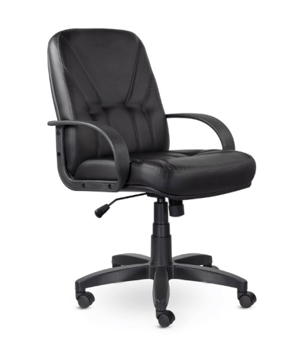 Дизайн кресла на роликах с низкой спинкой сочетает классические и современные элементы. Оснащено подлокотниками и механизмом регулировки высоты сидения. Рассчитано на нагрузку в пределах 120 кг.