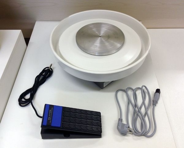 Электроуправляемое устройство оснащается двигателем постоянного тока. Прибор устанавливается на ровную поверхность. Диск из алюминия движется против часовой стрелки. Глиняные изделия могут достигать 20 см в высоту.