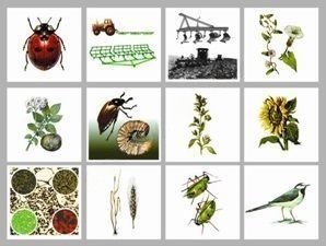 Карточки содержат иллюстрации растений, животных и людей, которые занимаются сельским хозяйством. Некоторые изображенные животные и растения относятся к агроценозам, другие - к биоценозам и приведены для сравнения.