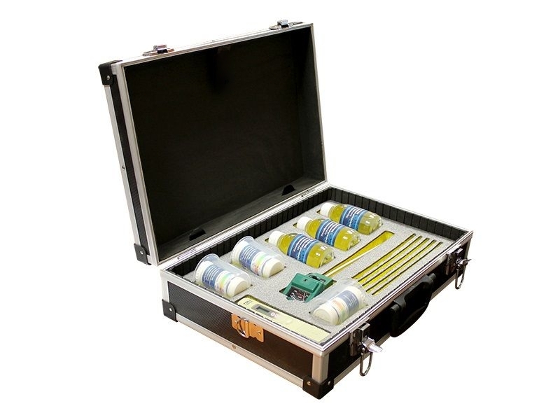 Оборудование для исследований почвы и сельскохозяйственных культур применяется в школе. Набор представлен в транспортировочном кейсе. На практических занятиях дети научатся определять уровень качества воды и кислотности почвы. Вместе с буферным раствором и цветовым тестом pH поставляется лабораторная посуда.