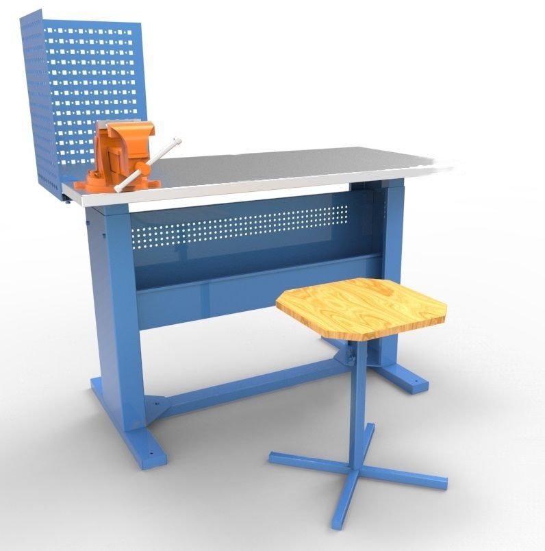 Основание и защитный экран поставляются в синем цвете. Рабочий стол используется учащимися 4-11 классов для сборочных, слесарных, монтажных и иных видов работ.