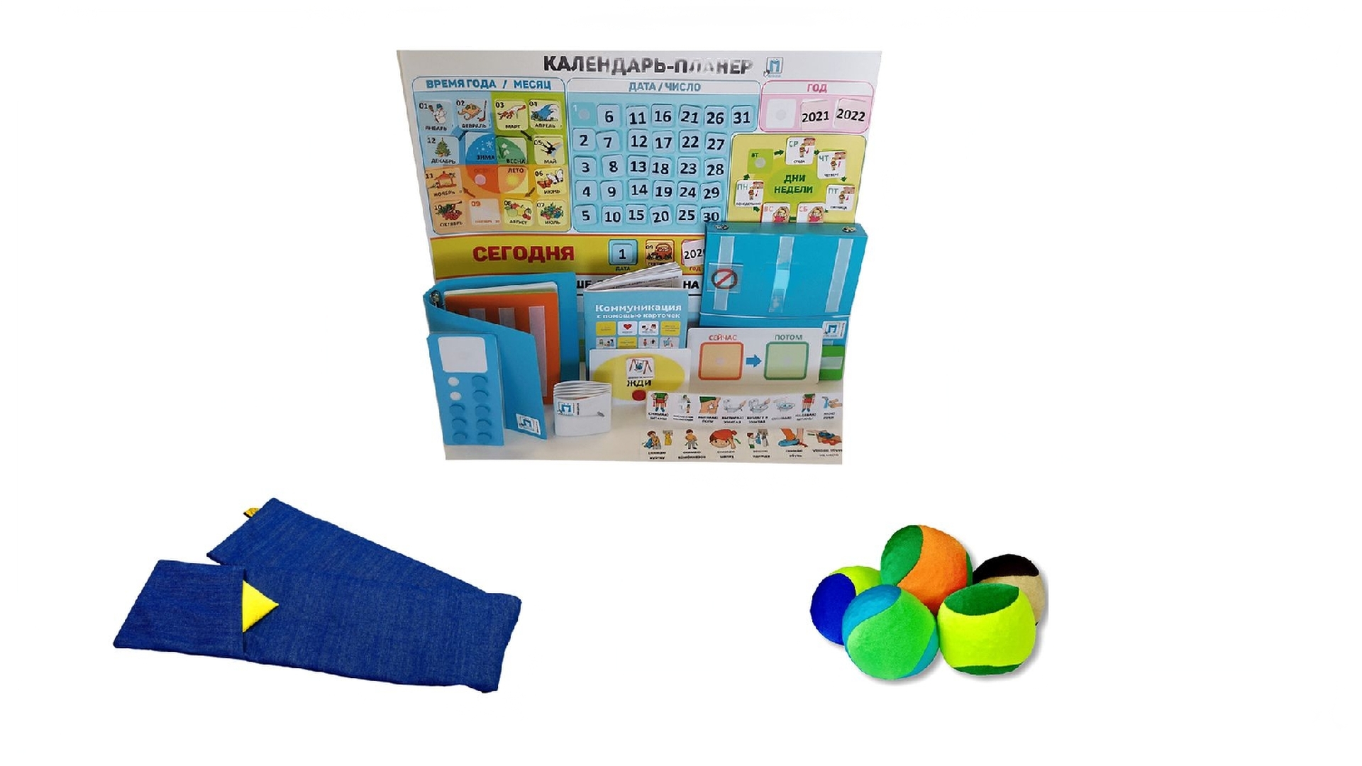 Мячики и утяжеленный шарф снимают нервное напряжение, воздействуя на рецепторы, усиливают сосредоточенность. Аксессуары применяются во время отдыха и упражнений на моторику пальцев рук, ловкость, память, баланс.