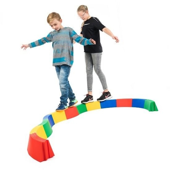 Бордюр составляется из цветных секций с изгибами. Прохождение по криволинейной трассе вырабатывает чувство равновесия и помогает бороться с плоскостопием.