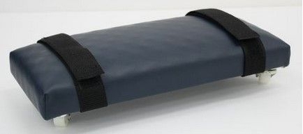 Фанерное основание с мягким покрытием устанавливается на колеса без фиксаторов. Предплечье закрепляется резинками на липучках. Ребенок перемещает тележку по ровной горизонтальной поверхности.