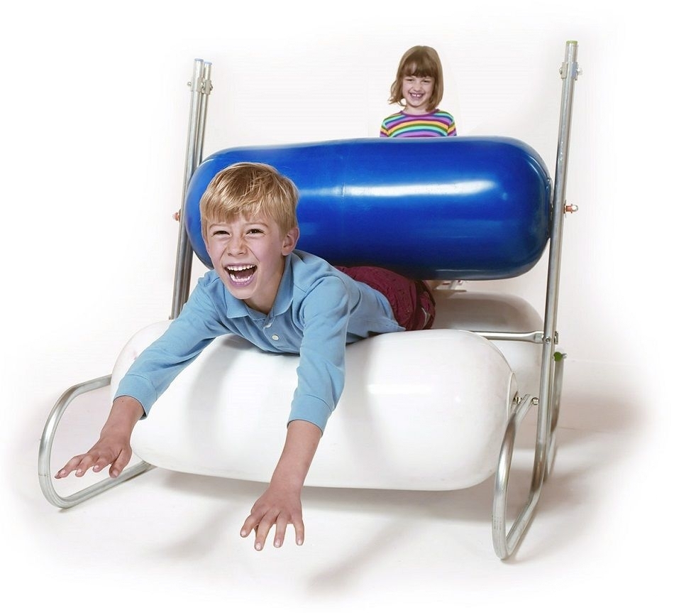 Цилиндрические элементы наполняются воздухом и вставляются в специальную раму. Дети взаимодействуют с установкой, пролезают между валиками, учатся воспринимать тактильные ощущения. Занятия помогают пациентам с сенсорными нарушениями.