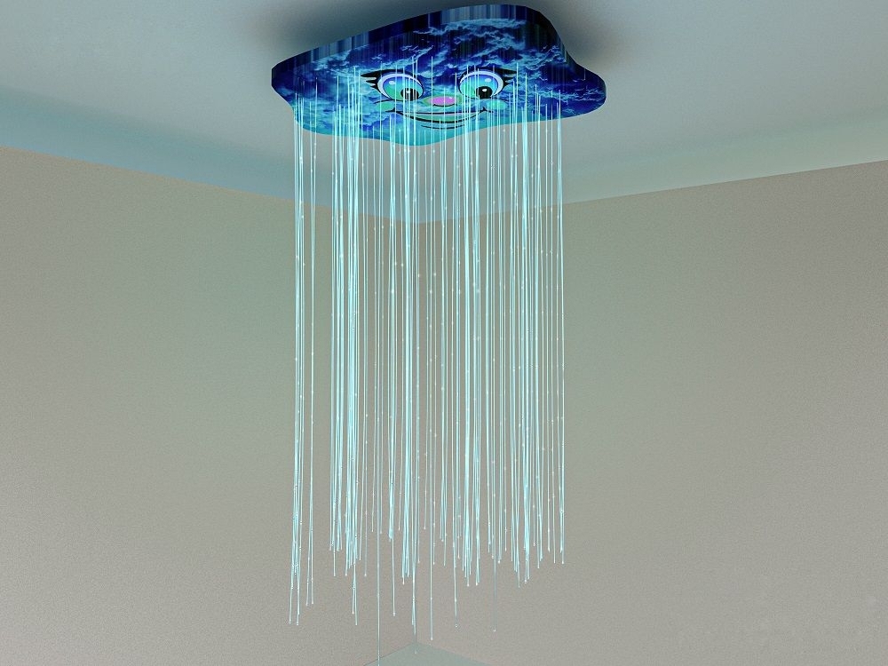 Подвесной элемент в виде тучи выполнен из алюминиевой композитной панели. Украшен декоративными глазками и улыбкой. Волокна имитируют дождь. Конструкция сопровождается эффектом вспышек молнии.