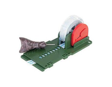 TapeQueen печатает ярлыки Брайля или покрывает выпуклыми точками самоклеющуюся ленту. Расстояние между знаками неизменно.