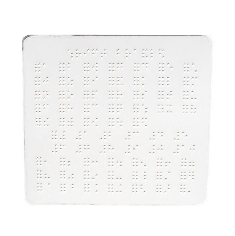 Азбука предназначена для изучающих шрифт Брайля. Пособие представлено белой пластиной с закругленными углами. На поверхность нанесены коды символов русского алфавита, которыми пользуются незрячие и слабовидящие люди. Во время чтения рельефные точки нащупываются пальцами.