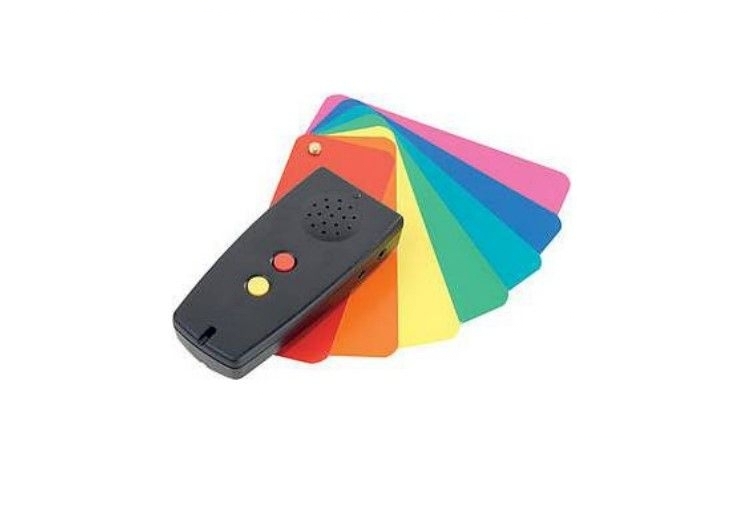 Устройство для слабовидящих или слепых пользователей распознает 150 цветов и озвучивает их названия на 20-ти языках. Говорящий определитель питается от 2-х батареек типа ААА (1,5 В).