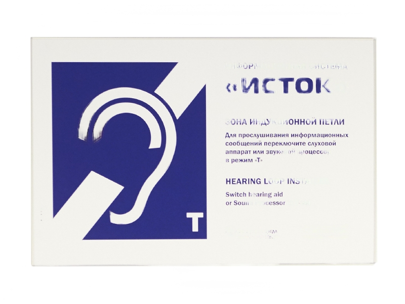 Информационная система применяется людьми с нарушениями слуха. Посредством системы звук от источника передается на слуховой аппарат. Радиус действия прибора составляет 4.5 м, уместно установить его в шумной зоне.