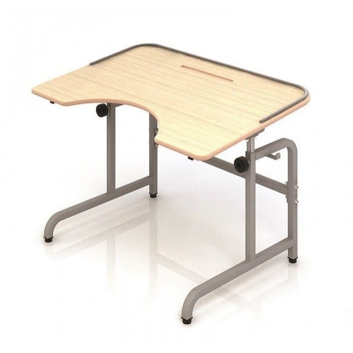 При необходимости парта эксплуатируется не только со стулом, но и без него. Фиксация надежными замками помогает конструкции долго оставаться в нужном положении. Устойчивая мебель выдерживает нагрузку до 70 кг. У специальной парты нет острых углов, рабочая поверхность оснащается эргономичной выемкой (со стороны ученика) и ложементом для канцелярии.