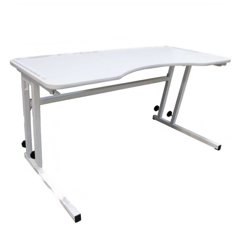 Каркас с телескопическим механизмом выполнен из конструкционной стали. Столешница располагает вырезом с закругленными краями, оснащается бортиками (высота 7 мм). Под рабочей поверхностью достаточно места для инвалидной коляски ученика.