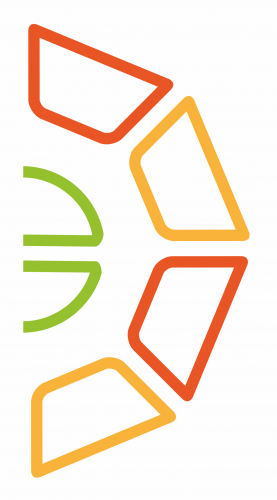 Логотип проекта "Доброшкола" представлен графическими элементами: разноцветные изображения парт, составленных в круг.