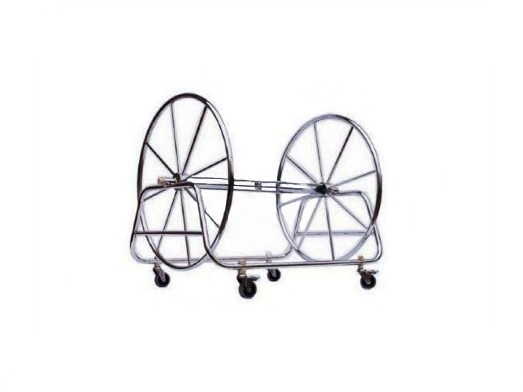 Конструкция сматывает разделительные дорожки для бассейна. Это позволяет экономить пространство складских помещений. Инвентарь не портится. Катушку на 4-х роликах легко поворачивать и передвигать. Центральная ось закреплена в горизонтальном положении между 2-мя колесами со спицами.