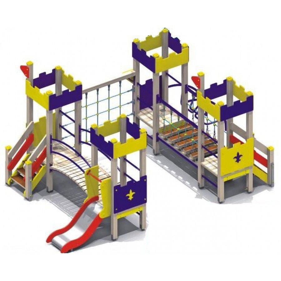 Уличная игровая зона выполнена из материалов повышенной прочности. Активный отдых помогает дошкольникам снять напряжение, развить чувство баланса, улучшить ориентацию в пространстве.