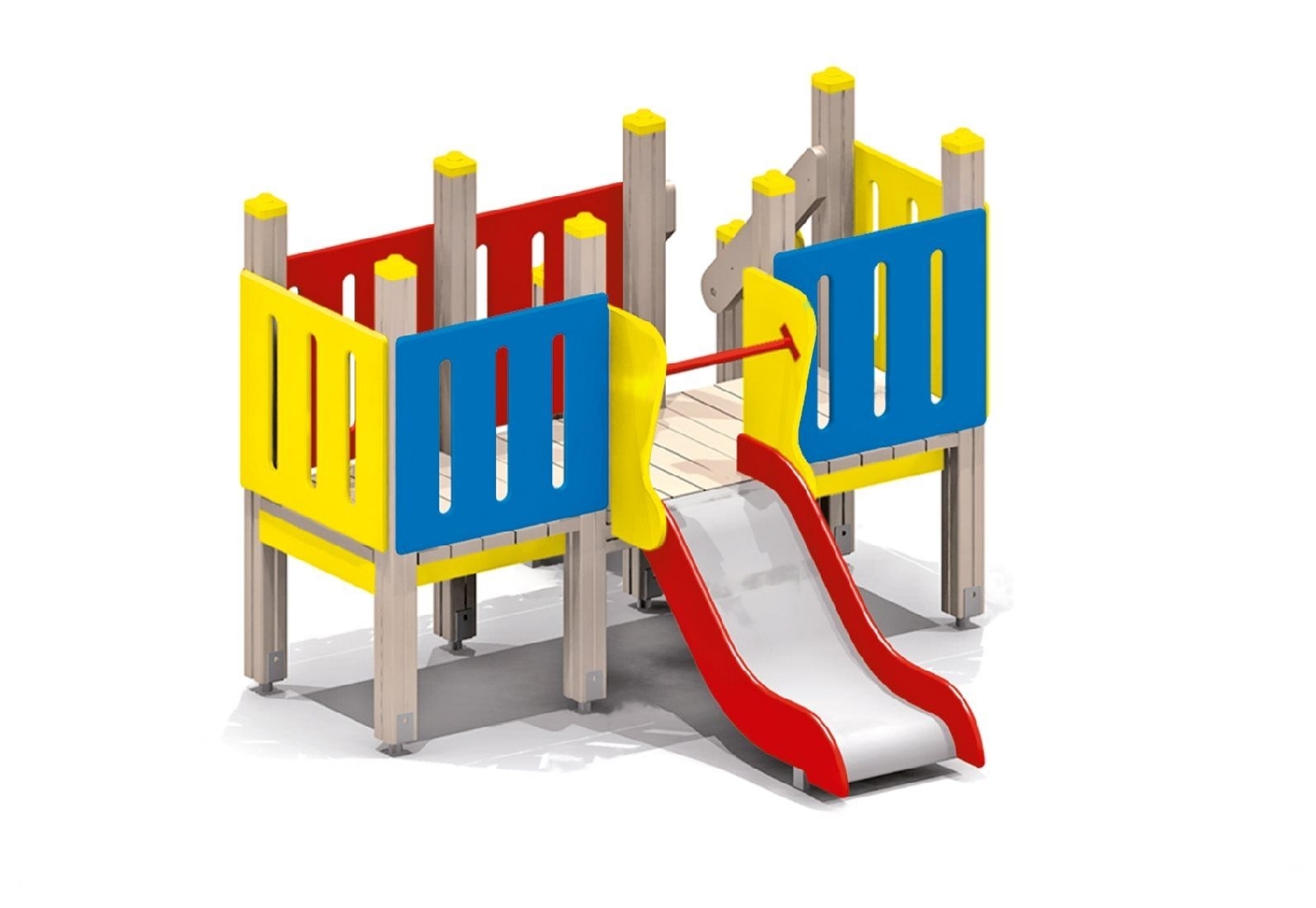 - Комплекс для детского досуга представляет собой площадку с безопасным подъемом и спуском. На скате горки предусмотрены участки старта, разгона и торможения. Ступени лестницы не скользят.