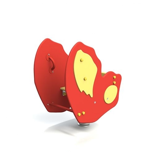 Качалка на мощной пружине устойчива к действию вибраций. Цилиндр с прижимным механизмом фиксируется между 2-мя плитами из металла. Сиденье и спинка фанерные, по бокам 2 декоративные панели. С внутренней стороны стенки дополнены поручнями (d 21 мм). Ноги ставятся на опору.