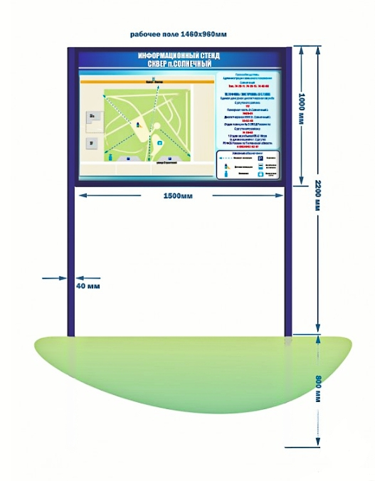 Стенд 2-сторонний размещается на территории школы или детского сада. Поверхности конструкции подготовлены к воздействию ветра и атмосферных осадков.