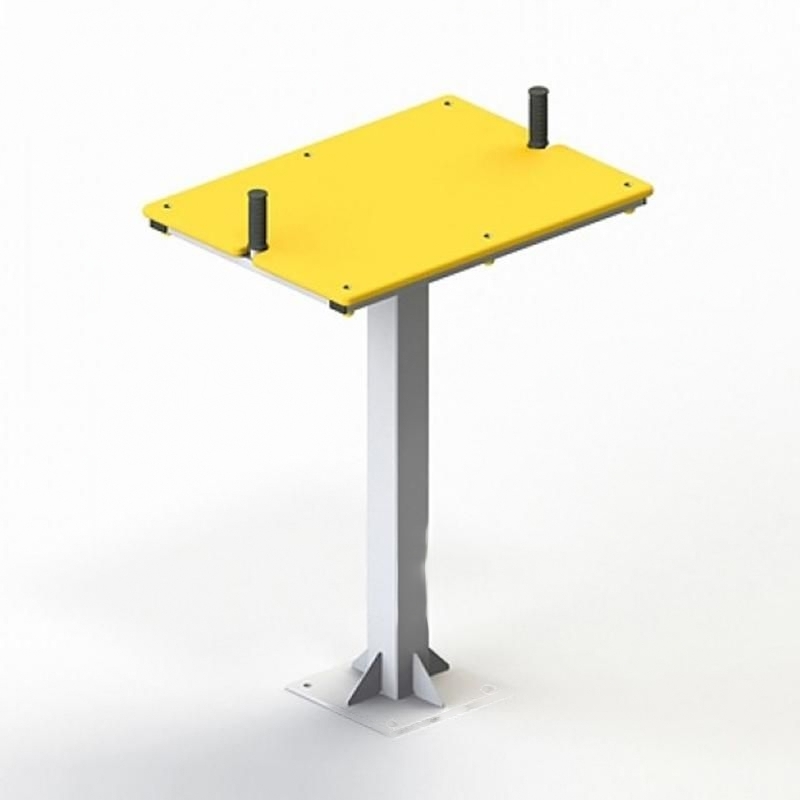 Стойка из металла с гальваническим покрытием обработана гипоаллергенной порошковой краской. Резьбовые соединения дополнены пластиковыми заглушками. Прочная столешница изготавливается из влагостойкой шлифованной фанеры. 2 рукоятки частично покрываются шероховатой резиной для удобства хвата.