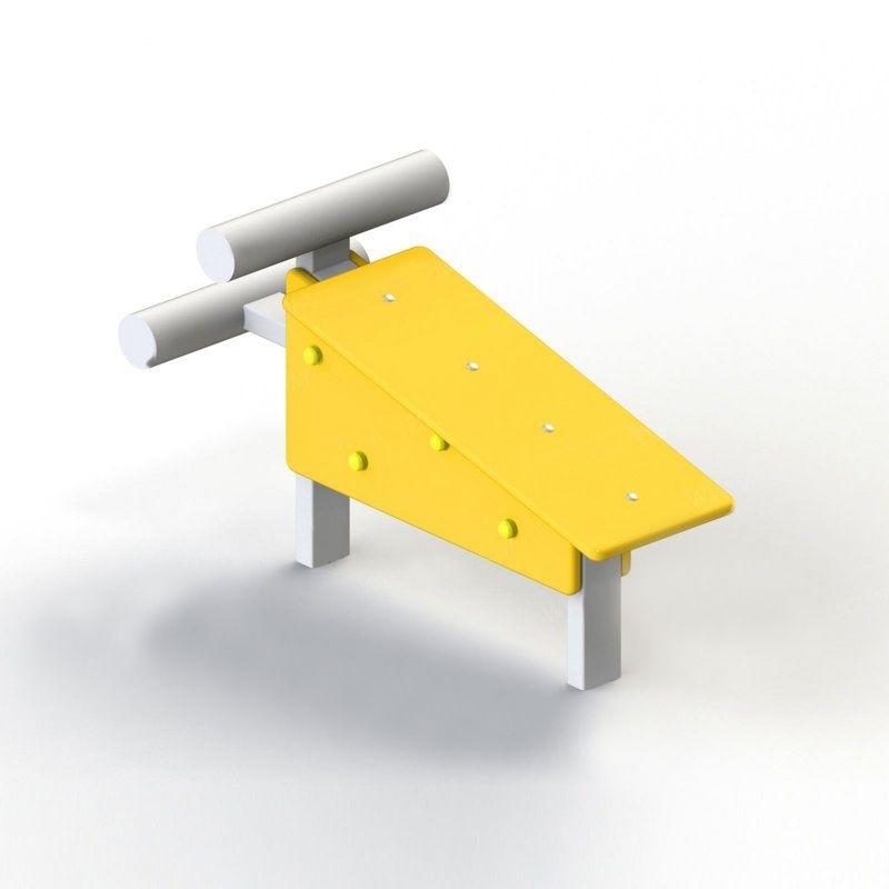 Металлический каркас покрывается порошковой краской. Наклонная скамья и боковые элементы изготавливаются из фанеры, углы скругляются. Ударопрочная конструкция отличается повышенной стойкостью к воздействию влаги.