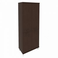 Шкаф с 2-мя фасадами оснащается глухими распашными дверцами. ЛДСП отделана кромкой (0,4 и 2 мм) в цвет мебели. Шкаф для хранения документации стоит на высоких регулируемых опорах из металла. Обе пары дверных створок дополняются металлической фурнитурой.