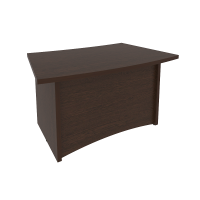 Криволинейный стол для кабинета руководителя стоит на мощном каркасе с удлиненной царгой и сплошными боковыми опорами. Поверхности из ЛДСП отделаны кромкой (0,4 и 2 мм) в цвет мебели. Столешница с изгибом придает рабочему месту удобство и визуальную легкость. Предусматривается регулировка опор под неровности покрытия.