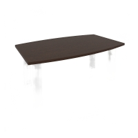 Переговорный стол с 4-мя опорами прямоугольного сечения и удлиненной столешницей располагается в кабинете муниципального учреждения. Выгнутые края длинных сторон столешницы обеспечивают удобство при работе с бумагами, ведении записей, чаепитии. Поверхность из ЛДСП отделана кромкой (0,4 и 2 мм) в цвет мебели. Предусматривается регулировка опор под неровности покрытия.