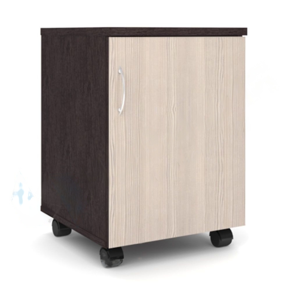 Изделие представляет собой тумбу на 4-х колесиках, с глухой дверью на металлических петлях и двумя горизонтальными отделениями для хранения бумажной документации, канцелярии, небольшого демонстрационного оборудования, учебных пособий и проч. Может размещаться под столом в кабинете школы, ДОУ, а также в других муниципальных учреждениях.