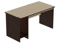 Конструкция с прямоугольной столешницей и царгой стоит на сплошных деревянных опорах. Компактное размещение системного блока, монитора, клавиатуры позволяет сэкономить место на рабочей поверхности и оставить больше пространства для бумаг.
