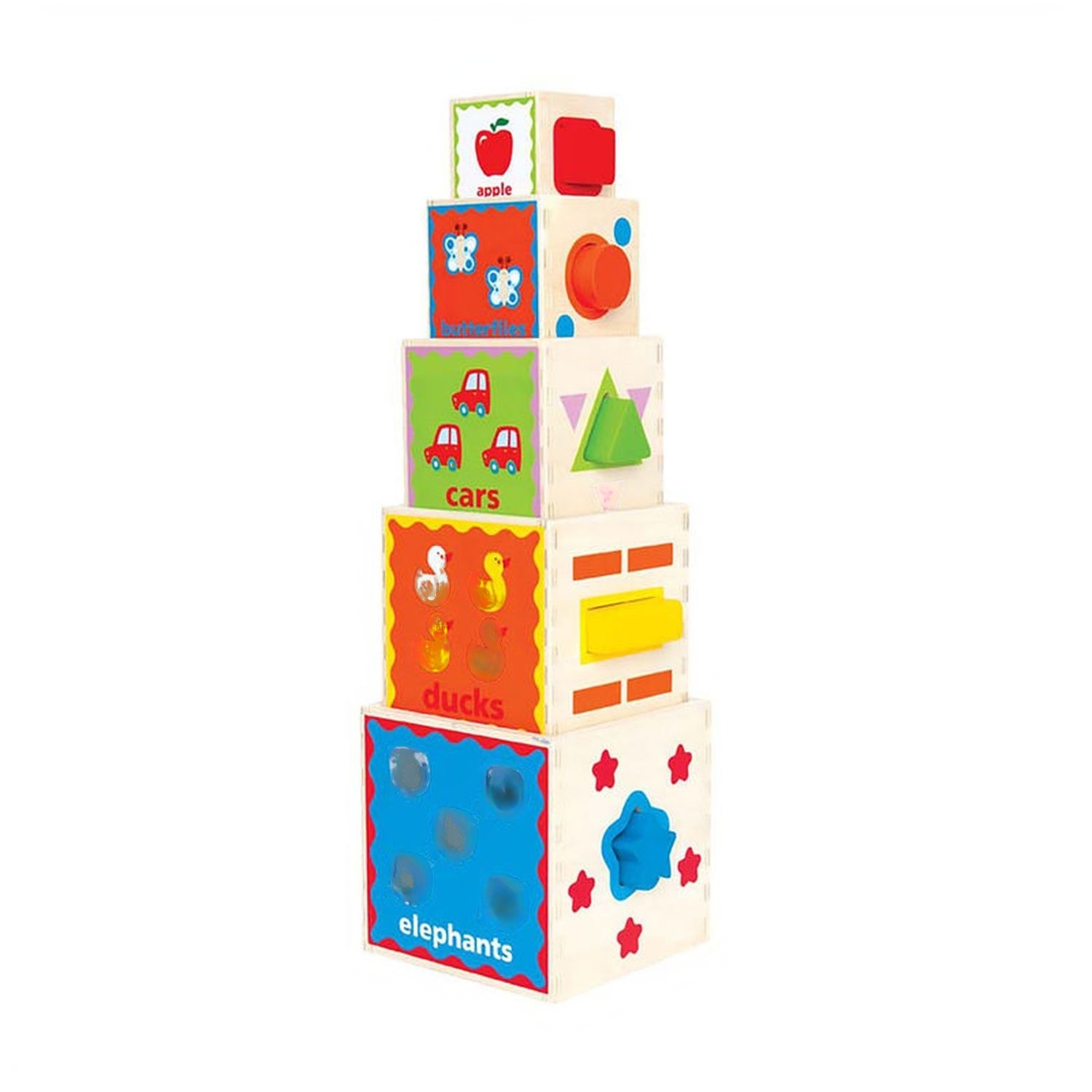 Нанесенные на сортер рисунки, цифры и слова позволяют использовать его для обучения первичным навыкам счёта, английскому языку, на методических занятиях с логопедом или психологом. Игры с кубами способствуют развитию мелкой моторики и навыков распознавания формы и цвета.