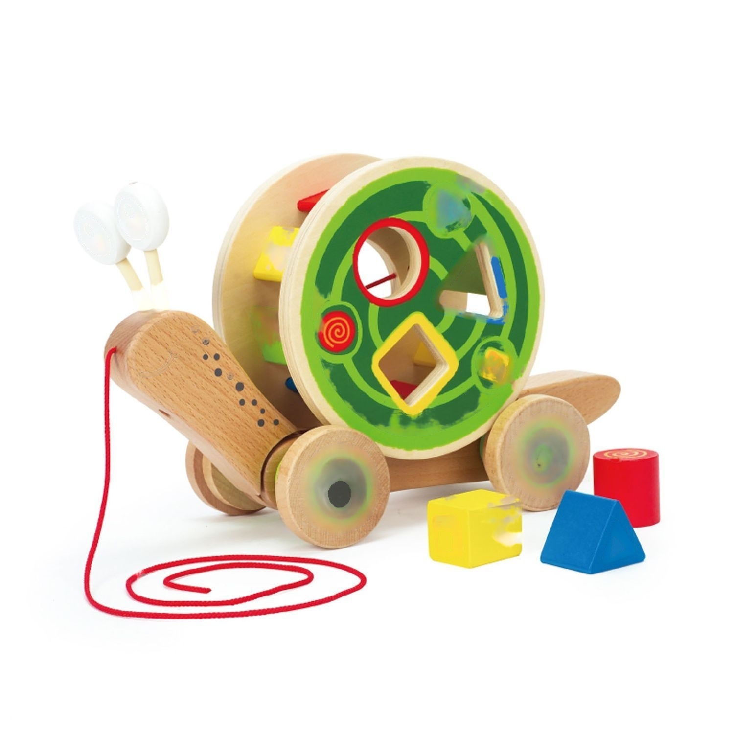 Игрушка оснащена 4 колесами и съемным сортером на 3 формы: круг, квадрат, треугольник. Каталку можно дать детям для свободных игр или использовать в рамках дидактической работы. Фигурки для сортировки входят в комплект, их можно хранить внутри игрушки, выпасть им не даст эластичная перегородка.
