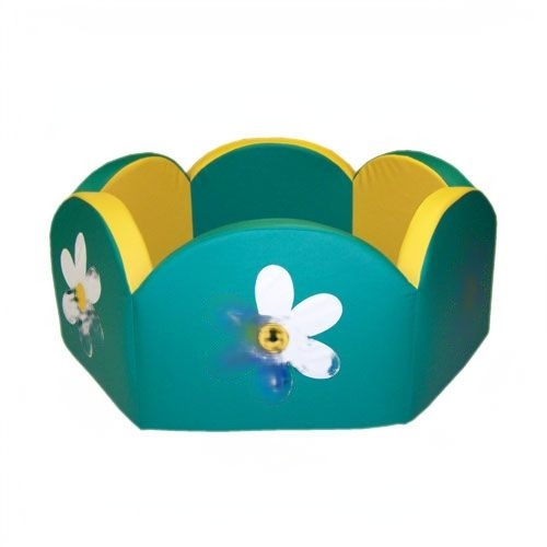 Бассейн в форме шестиугольника, с мягкими закругленными стенками и аппликацией ромашек, наполняется пластмассовыми цветными или прозрачными шариками. Может использоваться как для релаксации, так и для активных игр. Станет отличным дополнением интерьера игрового, спортивного зала, методического кабинета или сенсорной комнаты в ДОУ или школе.