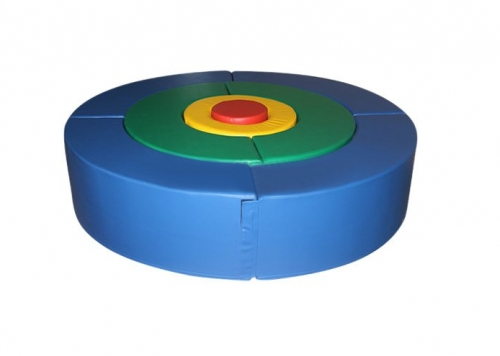Набор цветных деталей на липучках позволяет организовать занятие в сухом бассейне. Каркас огораживает пространство, в котором ребенок учится ходить или играет с шариками. Вспомогательные элементы расширяют возможности оборудования: служат емкостями, дополнительной площадью манежа, мягким конструктором, препятствием во время эстафет.