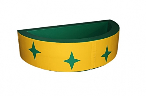 Бассейн в форме полукруга составляется из деталей с поролоновым наполнителем. Лицевая сторона украшена аппликацией. В полость насыпают шарики или другие элементы для тренировки тактильных ощущений.