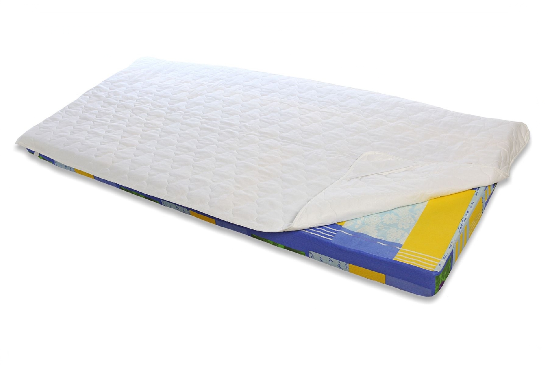 Наматрасник из стеганой бязи используется в зоне отдыха учреждения. Плотность наполнителя из силиконизированного волокна составляет 200 г/м2. Углы дополняются застежкой-резинкой. Хлопковое изделие поставляется в белом цвете.